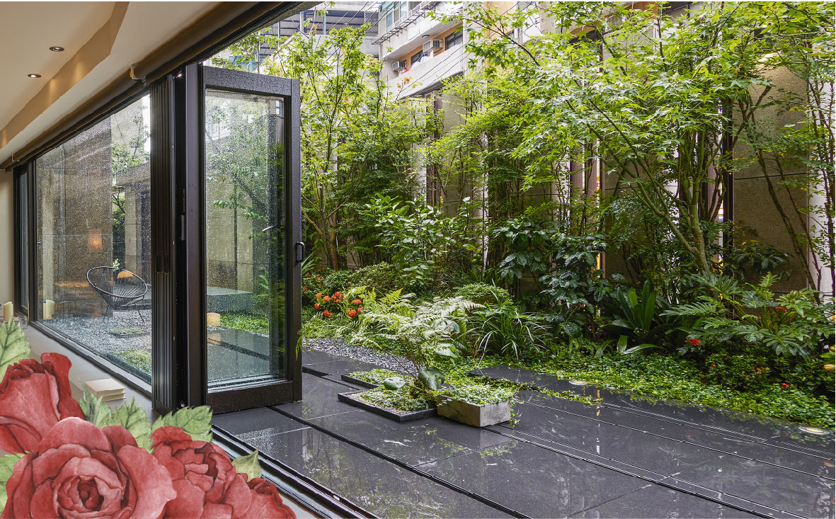 天母中山北路六段,兩側林蔭鬱鬱蔥蔥、枝葉扶疏,經過比肩悠閒散步的外國人旁,洛白宴正坐落在此,選用新鮮健康的食材,同時坐擁得天獨厚的好環境,